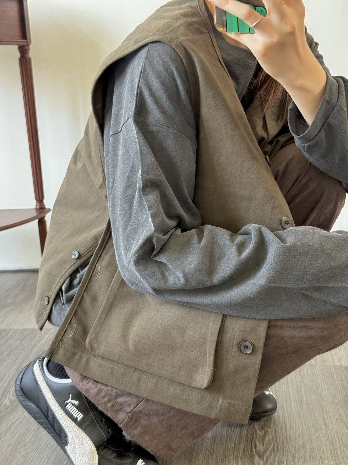 - 商品介紹:非常挺版的質料但不厚重,穿上它會顯得很有精神~~ 雙側邊皆有開口紐扣設計,可以根據身型、風格不同而調整,內側可以搭配小可愛或是長袖上衣也都很適合✨✨