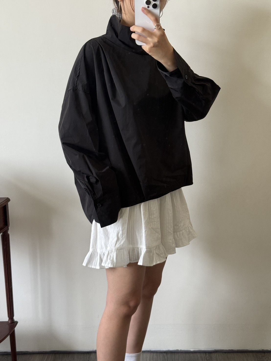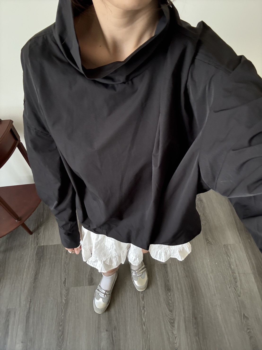 - 商品介紹:領口設計特別可以立領也可以翻領,下擺前短後長可以稍微遮住上半臀,輕薄尼龍不悶熱,穿起來非常舒適!